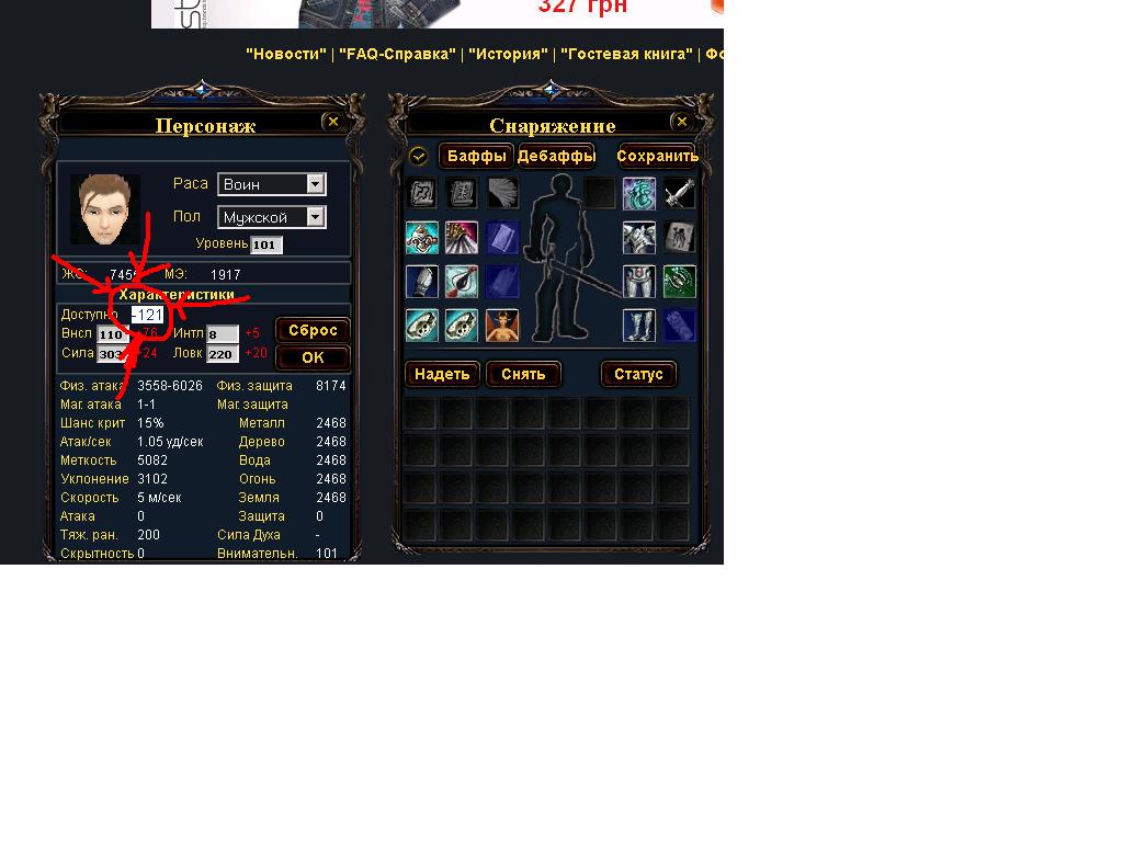 | Раб, чтобы расставит статы необходимо снять весь шмот который даёт вам дополнительные статы, затем эти чистые статы ставите в куклу, ну а потом одеваете её уже